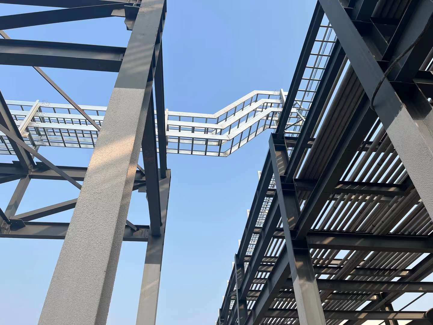 4、在公共通道或户外跨越道路段,底层梯级的底部宜加垫板或在该段使用托盘 。大跨距跨越公共通道时,可根据用户要求进步桥架的载荷才能或选用行架。