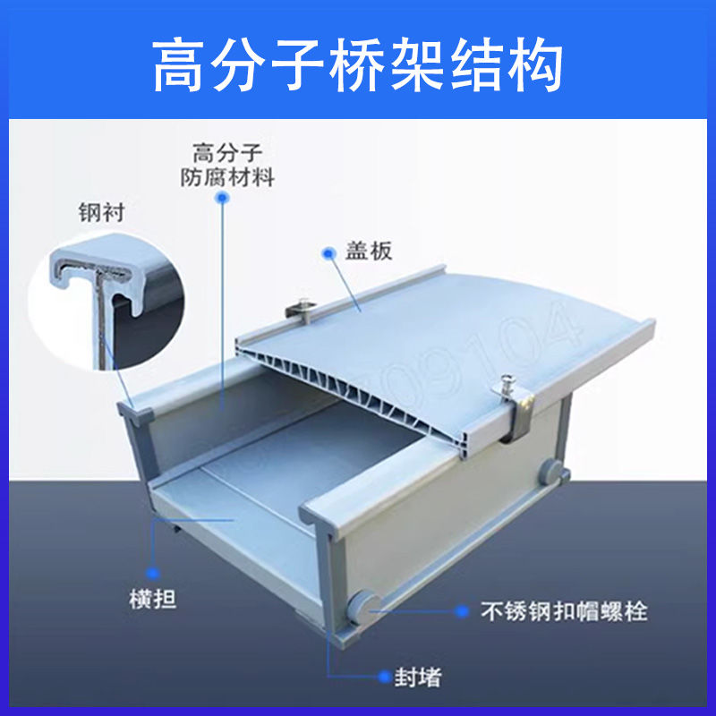 耐腐蚀性强:高分子材料本身具有良好的耐酸碱、耐腐蚀性能,能够在潮湿、盐雾等恶劣环境下长期使用而不生锈、不变形,有效延长了桥架的使用寿命,减少了维护需求。